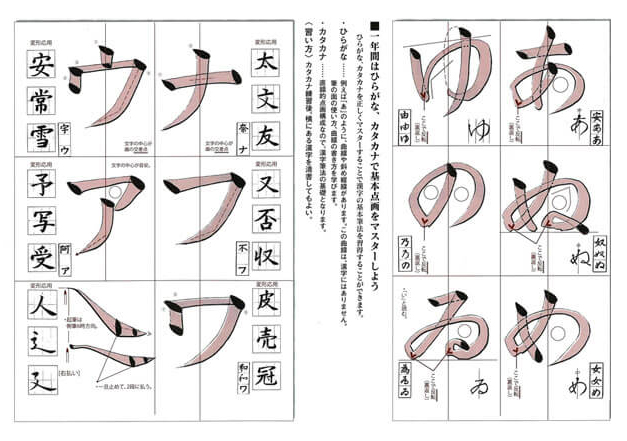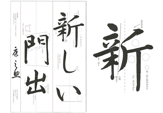 書峰社書道の実物大手本なら字の大きさや線の太さが一目瞭然。止め・ハネ・バランスなど、文字を美しく見せるポイントが書かれているので、初心者の方でも安心して習うことができます。